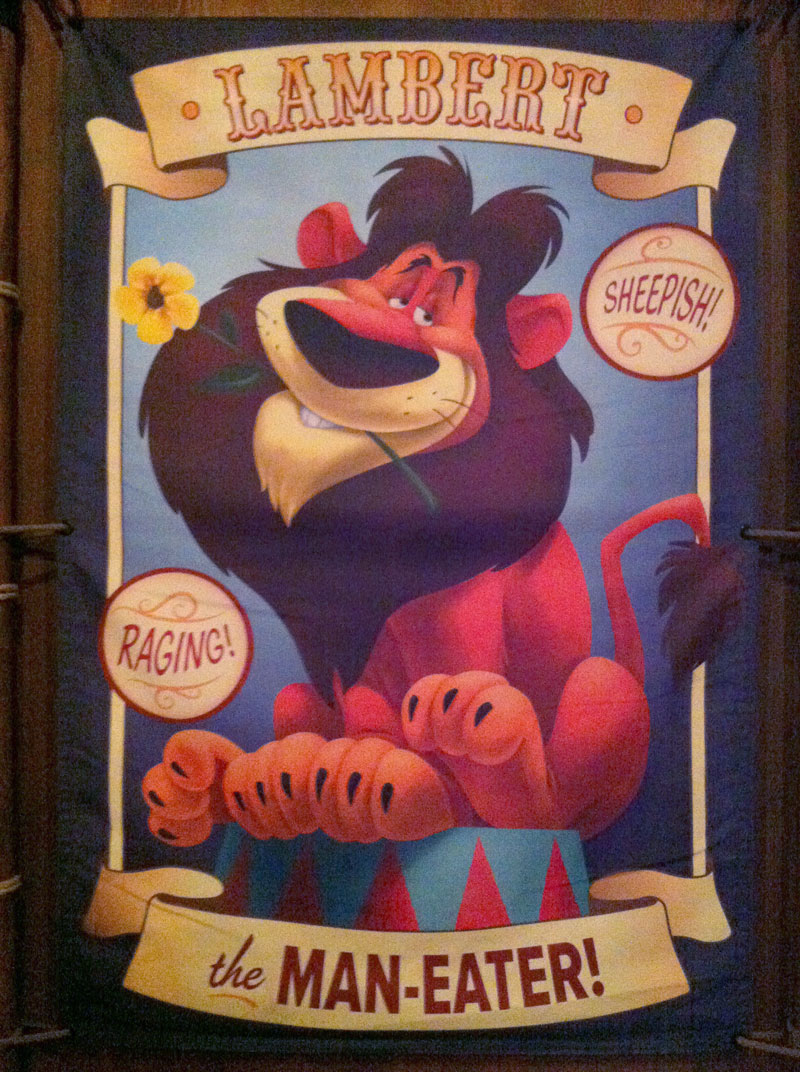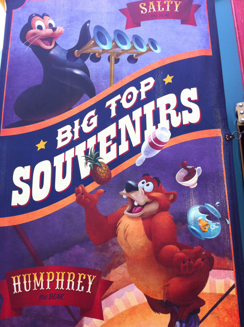 Now the funny thing is, in many circles, this is actually considered a successful example of Imagineering geekiness. Humphrey is practically unknown to the vast majority of the people visiting Storybook Circus. I’d wager that 99% of the people there think this is just a random bit of artwork made up specifically for the circus poster, and that Humphrey has no history outside of this one-time use. Of course, Disney geeks know Humphrey starred in a few National Park inspired shorts several decades ago, and he has actually been making a bit of a theme park comeback (Humphrey merchandise was on sale in Frontierland not too long ago).