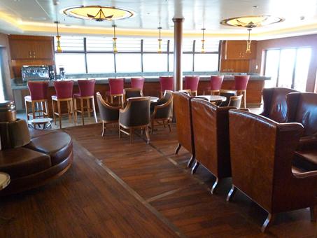 The Meridian bar is situated between Palo, the decent adults only Italian restaurant and Remy the extremely good (legit good, not just cruise ship good) fine dining establishment. They sell things like $26 cigars, very well made dirty martinis with blue cheese stuffed olives (the cheese being poached from Remy next door) and apparently shots of cognac that go for the price of a used car. The décor is understated and clubby. Thickly padded leather chairs, inlaid wood floors, granite bars and not one cartoon character in sight. Located at the extreme aft of the ship the passenger accessible outdoor patio space offers spectacular views. There are no kids to be heard, no forced fun parties to attend and no lines to queue up in. If you didn’t know that this was a Disney product you never would know. My father liked it here.