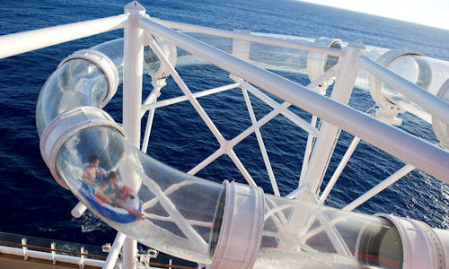 Nearby the AquaDuck snakes itself around deck 11, it’s elevated perch brings it closer to the height of deck 12, the same deck Meridian is on. While not exactly thrilling the much-ballyhooed water coaster had my daughter enthralled and wanting to ride it over and over again. Two people per rafter slosh through the plexi-glass tubes on a meandering tour of the ships perimeter. For now it’s unique to the Disney ships and is about as far removed in tone and intent from the Meridian lounge as one could possibly be. Swimsuits, splashdowns and cartoon ducks, my daughter liked it here.