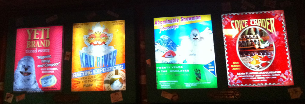 These screens are intended to function much like tourist brochures, like the kind you often see in Interstate rest areas or at Medieval Times or at the base camp of the world’s tallest mountain. It’s a bank of four screens, showing posters for local attractions, which rotate every so often by sliding up, as if Gupta or somebody was projecting them from his 1970s area Kodak slide carousel.