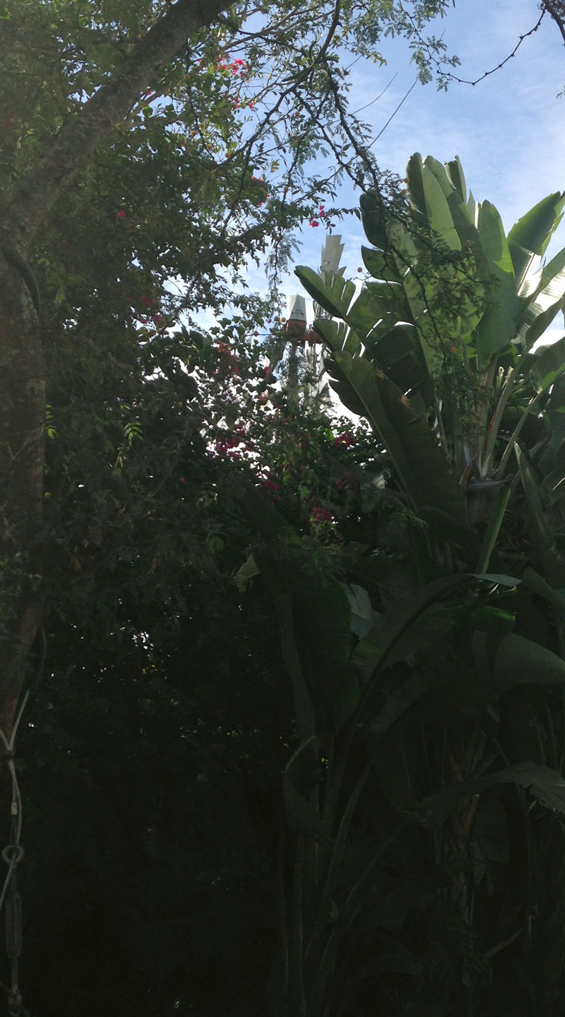 There it was! A windmill, still standing behind that fence, completely obscured by the lush Florida greenery. I swear you cannot see this thing unless you are looking for it. Here’s a satellite image from google maps: