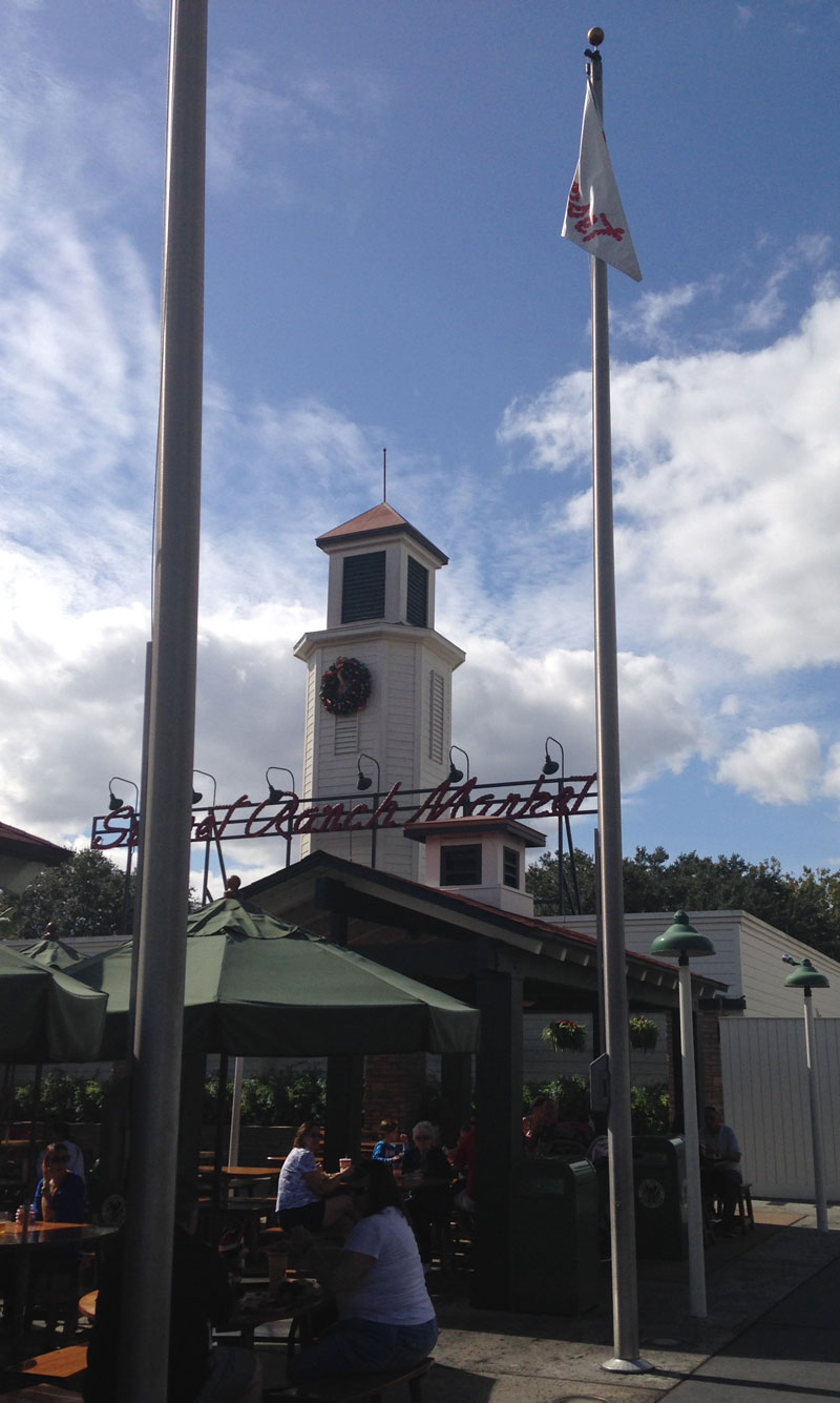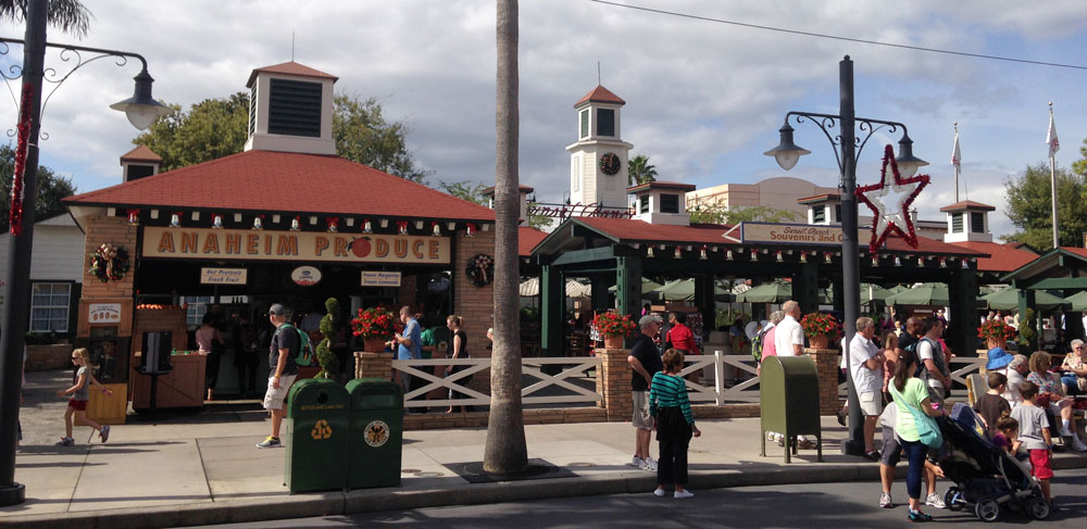 Recognize that? It’s the food court at Sunset Boulevard. A pizza place, burger joint, turkey leg shack, some sort of Froot stand. These things are a dime a dozen in theme parks (except for that weird “froot” thing. What is that strange food?) The name of the place is Sunset Ranch Market. We know this because there’s a sign.