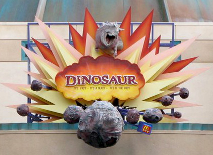 Ultimately the initial fan reaction was overblown. In reality McDonald’s had a fairly small presence limited mainly to one small location in each park selling McDonald’s fries and sometimes McNuggets. When Disney’s Animal Kingdom opened in 1998 McDonald’s had not only a fry location (the pun-rific Petrifires) but also a somewhat expanded menu at the largest restaurant in the park the Restaurantosaurus (they were really reaching for names back then). McDonald’s logos were not all that prominent on the food locations limited to discreet locations and small sizes. However McDonald’s also sponsored the major thrill ride at the park then named “Countdown to Extinction” later pointlessly renamed to the much more obvious “Dinosaur” (which today with it’s namesake movie long forgotten just seems idiotic). As it’s sponsor a McDonald’s logo was a prominent part of the attraction marquee for many years.