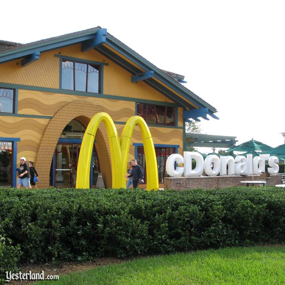 Two full menu locations were opened on property but not in the parks. One near the All-Stars resorts )featuring a hideous mash-up of McDonald’s characters along the exterior) should of raised fan concerns based on nothing more than the eyesore it caused. The other was located at Downtown Disney. Today only the All-Stars location remains and fortunately was remodeled in 2009 to become a modern and almost sleek rendition of the chain’s brand.