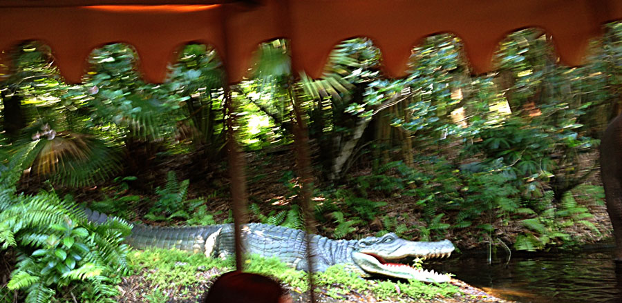 One of the coolest aspects about this cockodrill is that it existed in 1972, but I never noticed the weeping until I watched the video. I knew there was a cockodrill in the ride scene, but I figured he must have gotten replaced or broken over time. But when I rode Jungle Cruise last week, I made a point to look out for him and sure enough, he’s still there, and still spouting off on cue like Tammy Faye Bakker.