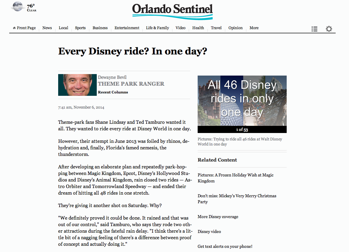 For us theme park geeks this all seems perfectly normal right? Of course it does, there is nothing wrong with us! Right? Nothing at all damn it! Believe it or not even some “civilians” find this type of thing interesting. Case in point the fact that Parkeology has once again landed in the pages of the Orlando Sentinel!