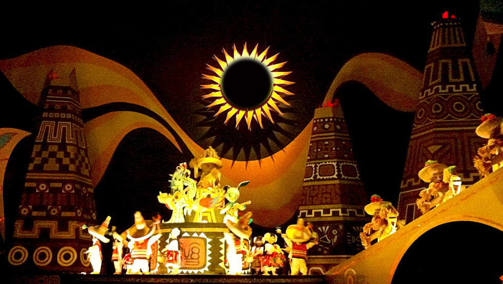 Since we’re old pros at awkwardly riding It’s a Small World, we immediately joined the “Eclipsiest Cruise That Ever Sailed” for a grand tour of all nine of It’s a Small World’s golden suns.